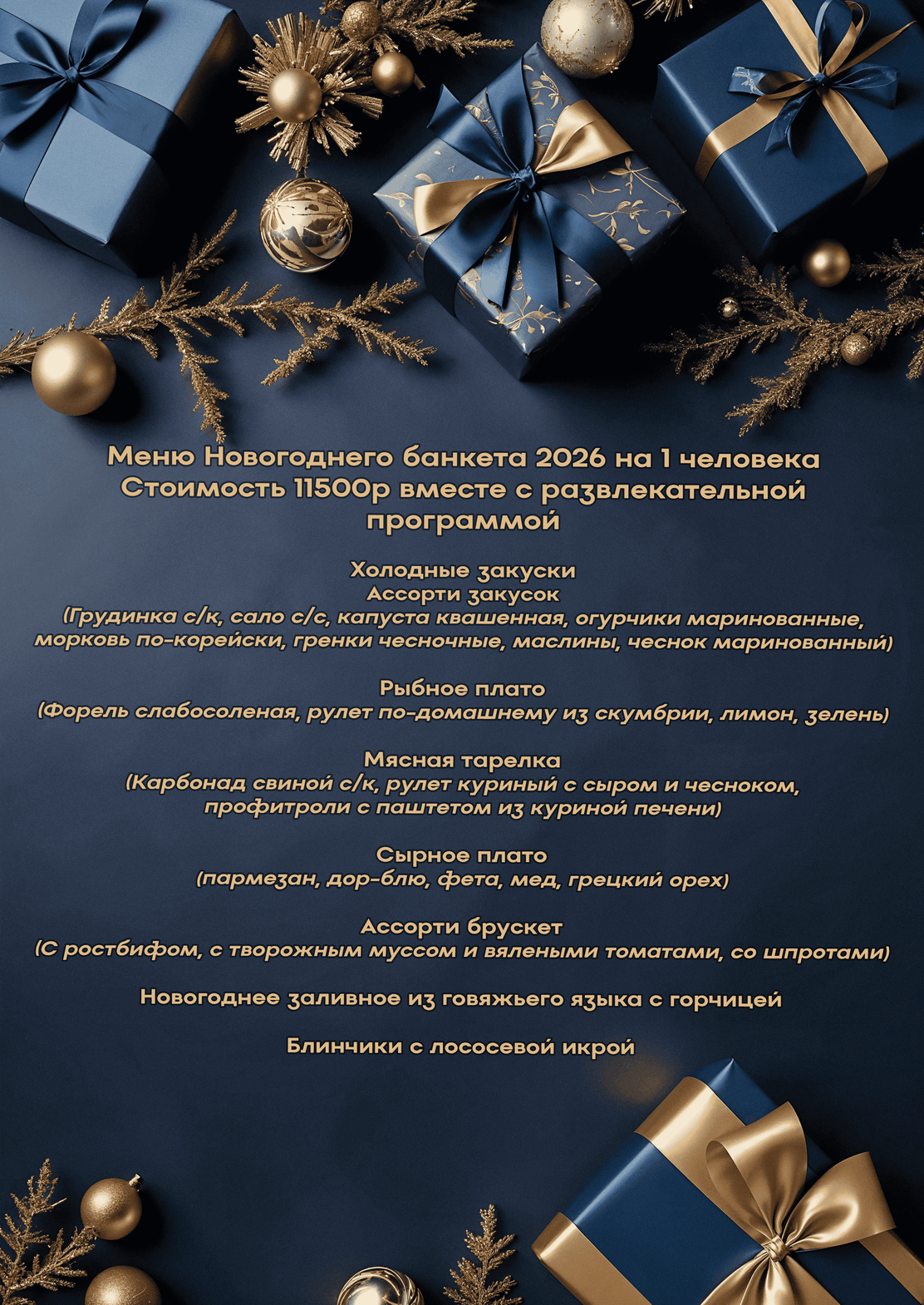 *По желанию /за доп. плату/ Новогодний банкет в отеле «Балтика». 11500 руб./взрослый, 8000 ребенок (3-14 лет включительно) вместе с развлекательной программой.